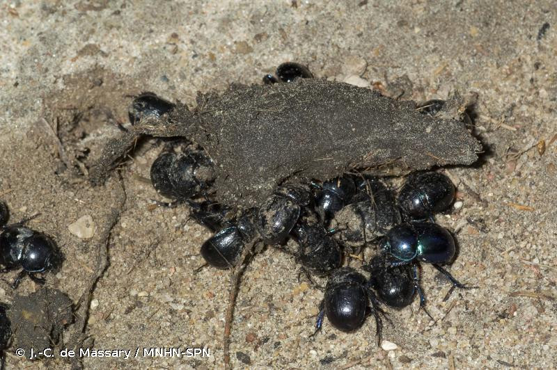 Adultes coprophages et saprophages, à large amplitude. Souvent dans les crottins; dans les champignons à l'automne. Diurne.