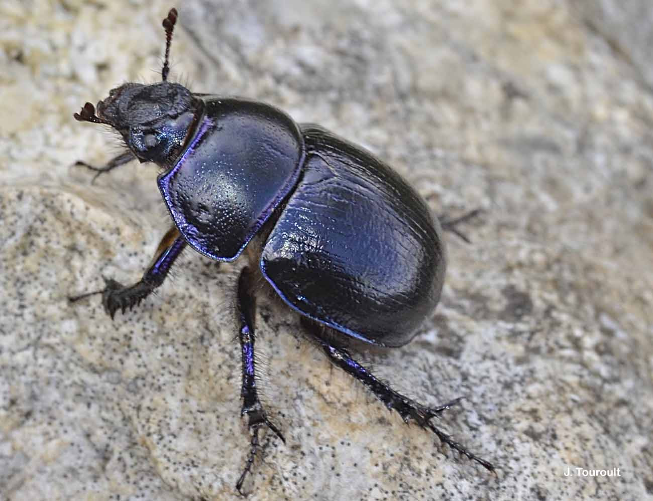 Corps court et convexe. Noir bleuté sur le dessus; à forts reflets bleu métallique sur le dessous. Élytres à stries fortes. Abdomen ponctué sur toute sa surface. Tibias postérieurs avec deux carènes.