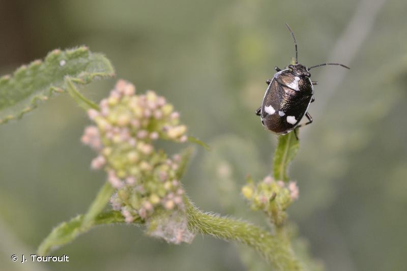 Taille : 5 – 7,5 mm Diagnose : Petite punaise de coloration générale bleu-vert foncé à reflets métalliques, bariolée de taches claires rouges, orange ou blanches. Corie (partie sclérifiée de l’aile antérieure) dont la partie centrale (mésocorie) porte une seule tache claire. Pronotum entouré par un liseré clair, avec une ligne médiane claire formant 2 fenêtres sombres Détermination : Simple. Espèces proches : Malgré des variations importantes de ses couleurs et de la forme de ses taches (30 formes connues), cette espèce globalement verte avec une seule tache sur les mésocories, est l’une des plus faciles à identifier dans le genre Eurydema. Période d’observation : Mars à novembre, avec 2 pics importants en mai et août. Biologie-éthologie : Elle s’alimente sur les fruits d'une cinquantaine de genres de crucifères. Son régime alimentaire a bien été étudié en raison des dégâts qu’elle peut causer aux cultures de choux. Elle est aussi parfois rencontrée ponctuellement sur des graminées et des Asteracées. Biogéographie et écologie : Espèce eurosibérienne présente dans le sud de la Grande-Bretagne, elle remonte au nord jusqu'en Suède à 65° de latitude nord et à l'est jusqu'en Chine et dans toute la Sibérie. Elle est également présente en Afrique du Nord. Elle peut atteindre localement 2 100 m d’altitude et vit dans une large gamme d’habitats : cultures de choux et autres crucifères comestibles (navet, moutarde, colza), friches et prairies fleuries, landes et lisières forestières, bords des chemins, pelouses rases, dunes, marais, bords de rivière boisés, terrains vagues, parcs et jardins. C’est une espèce très commune avec des densités parfois localement importantes, notamment dans les cultures de crucifères.