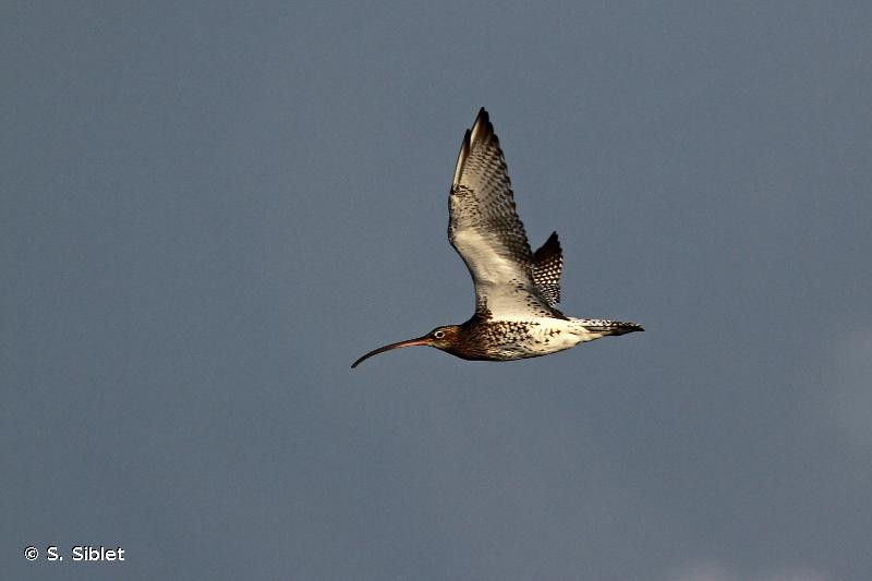 Le Courlis cendré est le plus grand limicole de l’Ouest-Paléarctique avec une envergure de 80 à 100 cm et un long bec incurvé de 10 à 15 cm. En vol, une forme en V blanc est particulièrement visible sur le bas du dos.
