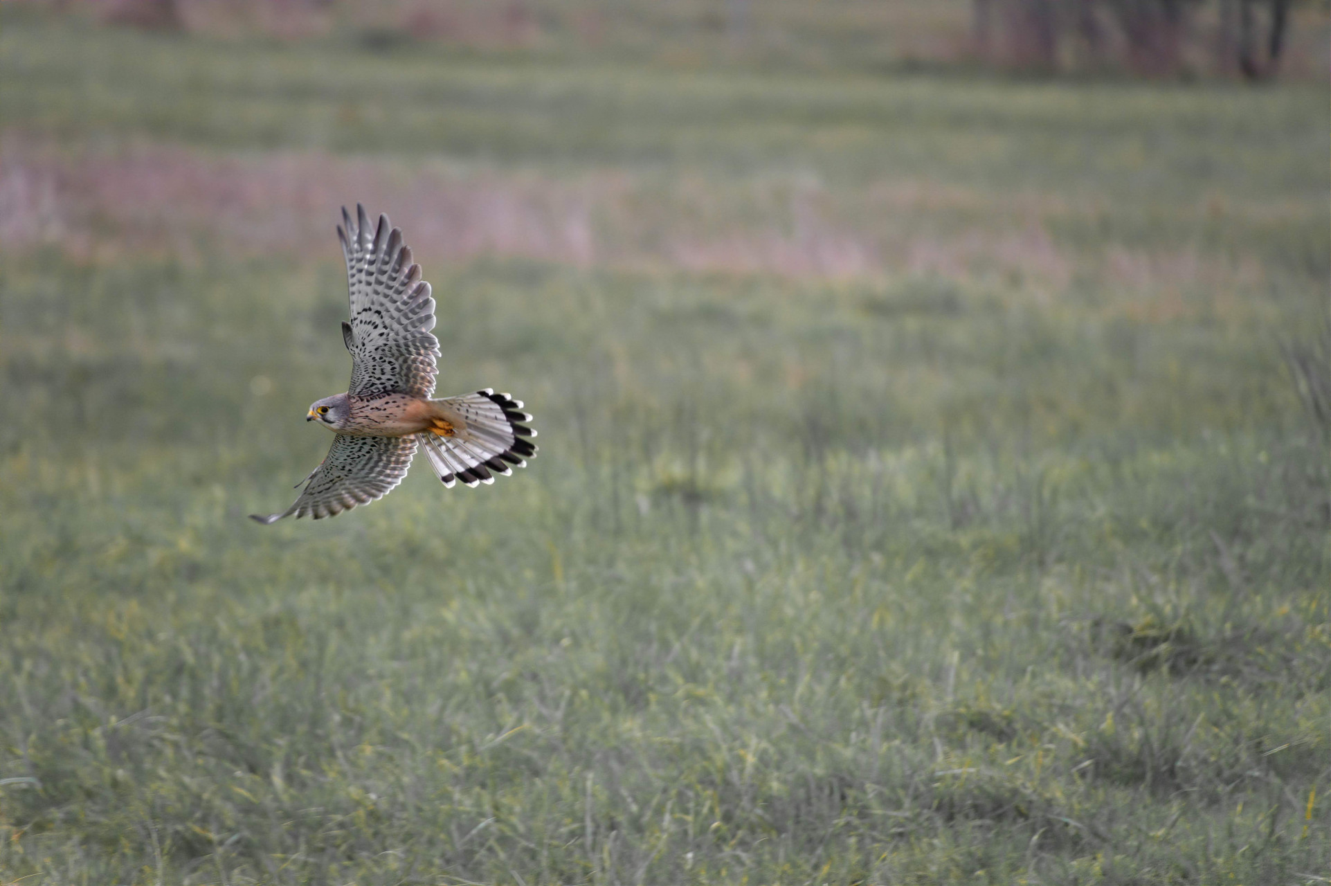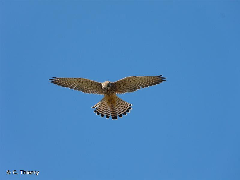 Le Faucon crécerelle se nourrit surtout de micromammifères, particulièrement de Campagnols, et d’oiseaux en proportion moindre. Au sud de son aire de répartition, il dépend en partie d’autres ressources telles que les insectes et les lézards. Son vol stationnaire de chasse, appelé vol en Saint-Esprit, est caractéristique. Une fois la proie localisée, il effectue normalement une descente par paliers successifs, lors lesquels il reprend son vol sur place. Il termine en piqué au sol pour la capture. La proie est presque toujours consommée au sol ou sur un perchoir, mais il arrive qu’il mange des insectes ou des petits rongeurs en vol.