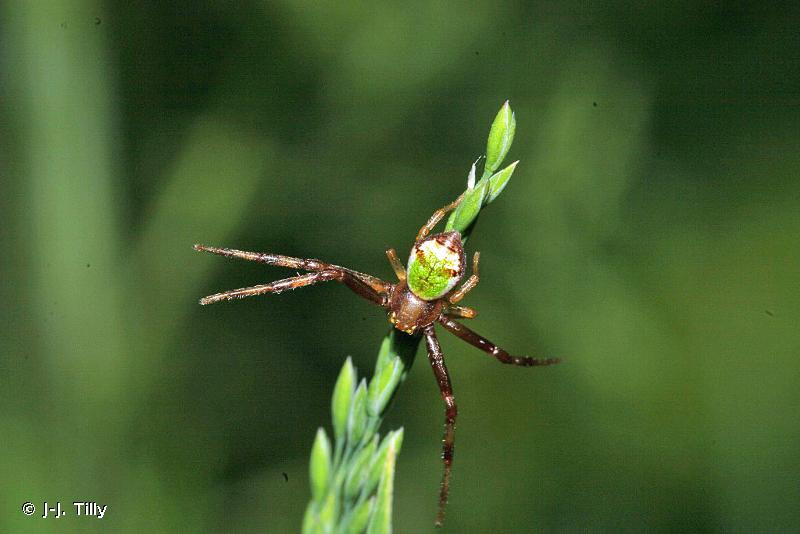 L’espèce présente un abdomen assez transverse, le céphalothorax et les pattes sont de couleur verte, l’abdomen est clair avec trois taches rouge-brun, parfois fusionnées, une médiane antérieure et deux transverses latérales. Il n’existe qu’une seule espèce dans le genre.